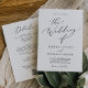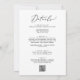 Esta delicada caligrafía negra, toda en una cena QR, es perfecta para un boda moderno. El romántico diseño minimalista presenta una bonita y elegante tipografía negra sobre un fondo blanco con un aspecto limpio y sencillo. Guarde el papel incluyendo los detalles en la parte posterior de la invitación a la boda en lugar de en una tarjeta separada. Incluya un código QR para que sus huéspedes puedan consultar su sitio web boda o RSVP fácilmente en línea.