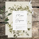 Este bonito y delicado diseño es elegante pero sencillo. Se compone de una caja de texto blanca rodeada de delicada vegetación botánica en un suave ramo sobre un suave fondo verde. Este diseño forma parte de la Delicada colección Boho Greenery Boda Suite creada por Simply Farmhouse Press.