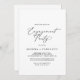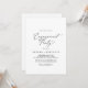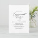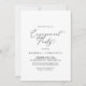 Esta delicada invitación a la fiesta de compromiso de caligrafía negra es perfecta para un evento de compromiso moderno. El romántico diseño minimalista presenta una bonita y elegante tipografía negra sobre un fondo blanco con un aspecto limpio y sencillo.
