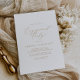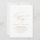 Esta delicada invitación a la fiesta de compromiso con la caligrafía dorada es perfecta para un evento de compromiso moderno. El romántico diseño minimalista presenta una encantadora y elegante tipografía de champán amarillo dorado sobre un fondo blanco con un aspecto limpio y sencillo.
