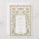 Esta exquisita invitación a la boda presenta un delicado diseño Art Nouveau, adornado con una libélula muy detallada y suaves motivos florales en tonos pastel de amarillo y verde. El frente de la tarjeta muestra las intrincadas obras de arte de la libélula, rodeadas de elegantes flores y hojas, creando un ambiente sereno y sofisticado. El detallado borde floral añade un toque de encanto vintage, perfecto para una celebración boda eterna. La parte trasera de la invitación sigue el tema con un diseño sencillo pero encantador, destacando la fecha boda con un elegante arreglo de libélula y flores. Esta invitación es ideal para las parejas que aprecian la elegancia y el arte de la época Art Nouveau.
