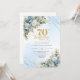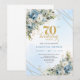 Celebrate a milestone in style with this elegant 70th birthday invitation featuring watercolor dusty blue and white flowers, soft eucalyptus greenery, and a shimmering gold frame. Designed in chic boho style with refined script lettering, this floral invitation is perfect for a classy 70th birthday party. Ideal for formal, garden, or luxury celebrations with a timeless, sophisticated touch.