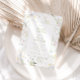 At the heart of the invitation is a beautifully crafted watercolor allover print design, adorned with lush greenery, butterflies, and delicate flowers in soft pastel colors. This artistic element captures the essence of romance and natural beauty, creating a serene and inviting atmosphere.