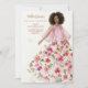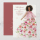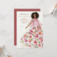 This invitation stands out for its sophisticated watercolor effect, bringing an artistic, soft, and ethereal feel to the design. The illustration features a full-body woman in a graceful model pose, with dark hair and a delicate, refined presence. She wears a pink tulle dress adorned with flowers that appear to scatter softly in shades of pink, red, and white, accompanied by green leaves that add freshness and balance. The front background is white, allowing every brushstroke to be seen clearly, while the back of the invitation is red, adding warmth and contrast that elegantly complements the illustration without interfering with its artistic details. Every element conveys charm, femininity, and a romantic aura, making this invitation both exquisite and visually captivating.