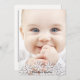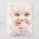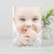Esta invitación contemporánea tiene una foto llena de su bebé hermoso y se embellece en la parte inferior con un racimo de margaritas caprichosas blancas. En el revés, un panel gris-enmarcado sostiene sus sentimientos y tres margaritas en la parte inferior. La cruz ofrecida se puede arrastrar a cualquier ubicación, hacer más grande o más pequeña o eliminar haciendo esto una invitación versátil conveniente como invitaciones de una fiesta de cumpleaños también.