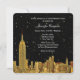 Invitación Delineado dorado del skyline de Nueva York en ciel
