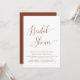 Un elegante guión de moda, la invitación a la ducha de novia terracota. Esta invitación a la ducha de novias es un tema mínimo con un elegante texto de escritura naranja quemado en terracota. Personalizar el texto para crear la invitación perfecta a la ducha de boda.
