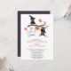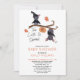 Esta invitación para baby shower "Too cute to spook" es tan linda! Con murciélagos y calabaza de acuarela en una rama, uno con sombrero de bruja y el otro colgado boca abajo sosteniendo un letrero que dice "¡boo!", el texto está en tipografía de letra manuscrita moderna. La tarjeta está personalizada con los detalles de tu baby shower en negro y naranja a juego, y la parte posterior de la tarjeta es de un color púrpura a juego. Este diseño es parte de una colección en nuestra tienda Zazzle con otros productos coordinados para tu fiesta, así que asegúrate de echarle un vistazo. Copyright Elegant Invites, todos los derechos reservados.