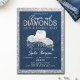 Una moderna, elegante y moda invitación para la fiesta de cumpleaños con un tema de dinamismo y diamantes. Presenta un fondo de denim, letras personalizados y tipografía en blanco. ¡Un diseño de moda "denim and diamante" para una mujer en su trigésimo cumpleaños!