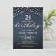 Un sencillo, moderno, elegante y moda modelo de invitación para una fiesta de cumpleaños de 21 años con un fondo denim, cuerdas de luces rústicas, la palabra BIRTHDAY cubierta de diamantes blancos (diamantes simulados, no reales) y en escritura moderna de caligrafía, y tipografía en blanco. Un elegante diseño de "denim y diamantes" de 21 años para mujeres, que puede ser personalizado para cualquier edad, en sus 21, 30, 35, 40, 50, 55, 60, 65, 70, 80 o 90 años!