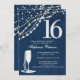 Invitación Denim Diamonds Pearls Champagne ElegantSweet 16