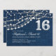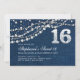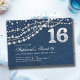 Una moderna, elegante y elegante plantilla de invitación a la fiesta dulce de 16 años para chicas con fondo de denim, cuerdas de perlas y diamantes (efecto digital) y tipografía moderna en blanco perla. Un diseño de moda "diamantes y perlas" para una chica que cumple dieciséis años, en su decimosexto cumpleaños, que combina otro tema de moda: el denim y los diamantes. Una buena elección para un adolescente a quien le gusta el denim, los diamantes, las perlas, el glam y el glitz, el campo occidental y la elegancia sin pretensiones.