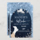 Celebremos la futura novia al verdadero estilo cowgirl con esta invitación a la fiesta de la Bachelorette de los Chicas Glam Bachelorette. Con un fondo de shimmer azul, un ilustracion de moda de las piernas de una vaquera con botas blancas y decoración diamante de imitación, y un gorra de moda blanca de vaquera con guarnición diamante de imitación, así como un marco de arco de color denim oscuro con "diamantes", este diseño de glam occidental es perfecto para una fiesta de "Último Rodeo", "Boots & Bling" o "Nash Bash". Ideal para novias amantes del campo, viajes a Nashville, noches de fiesta occidental o una diamante de imitación celebración de vaqueros, esta invitación combina el encanto rústico con el brillo glamoroso. Personalizar con los detalles de su fiesta para el final del Sendoff del país-Occidente antes de que ella diga "¡Lo hago!"