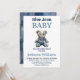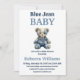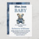 Invitación Denim Patchwork Bear Boy Blue Jean Baby Shower