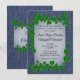 Una encantadora invitación al denim con una vid sobrepoblada. Ponga los nombres de la pareja de un lado con toda la información del boda y saludo al revés. Por favor, verifique tres veces el texto.