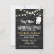 Adorable college graduation invitation for someone who is graduating from dental school - dentist, orthodontist, dental hygienist, etc.! Features a faux chalkboard background and cute graduation hat, tooth and string party light graphics!
