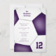 Esta invitación a la fiesta de cumpleaños con temática deportiva para niños o chicas muestra la imagen de una bola de fútbol púrpura y blanca de tamaño abstracto en la que se pueden personalizar todos los detalles del fiesta - de katz_d_zynes