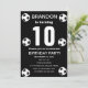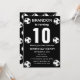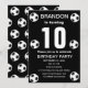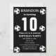 Décimo cumpleaños para un hincha de fútbol, deportes, niños, chicos, por él. Blanco y negro, moderno, elegante invitación a la fiesta de cumpleaños. Por favor, personalícelo con sus detalles.