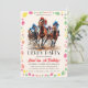 Moderno Race Horse Derby Fiesta Invitación ecuestre Moderna Carrera de Caballos Derby Invitación de fiesta con el ilustracion de un caballo de carreras con jockey y patrón a rayas en la espalda. Todos los elementos de texto se pueden cambiar para que este diseño pueda ser utilizado también para otros eventos: elegante invitación a boda ecuestre, fiesta de cumpleaños a caballo, fiesta de observación derby, apertura de establos y más. El fondo, el color del ilustracion y los colores del texto se pueden cambiar con la herramienta de diseño!