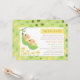 ¡El doble de alegría y el doble de diversión! ¡Dos pequeños milagros en vez de uno! Esta invitación tiene el ilustracion de dos lindos bebés durmiendo en una vaina de arveja. Debajo de los bebés hay margaritas amarillas. Una paleta de colores de verde y amarillo que es neutra desde el punto de vista del género. Patrón de círculos para el fondo. ¡Ideal para los padres que tienen gemelos! Personaliza fácilmente con los detalles de tu ducha de bebé.