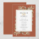 Con delicadas hojas de vegetación en acuarela y copas de champán, esta invitación para un brunch chic y brindis por un shower nupcial puede ser personalizada con la información de su evento de celebración especial, con un fondo de terracota en el reverso. Diseñado por Thisisnotme©