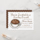 La invitación presenta una ilustración original de un delicioso café con leche, con texto marrón y acentos. Simplemente personalice con su información para una invitación única para una ducha de novia, fiesta de cumpleaños o desayuno de compromiso.
