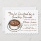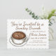 La invitación presenta una ilustración original de un delicioso café con leche, con texto marrón y acentos. Simplemente personalice con su información para una invitación única para una ducha de novia, fiesta de cumpleaños o desayuno de compromiso.