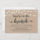 Hermosas Luces de Cadena de Granja Rústica Moderna, Fuente de letra Script Negra en Fondo Kraft Marrón, Anuncio de Casamiento a Escondidas, Tarjeta de Invitación (Desayuno Brunch Felices Para Siempre). Esto es perfecto para la recepción de su boda y la fiesta de celebración posterior a la boda. Agregue sus detalles en la misma fuente / letra.