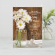 Invite a los invitados a seguir la celebración la mañana después de la ceremonia de matrimonio con la invitación informal pero elegante Mason Jar y White Daisies Country Post Wedding Brunch. Esta encantadora invitación de desayuno o almuerzo después de la boda con tema rústico chic presenta una fotografía floral digitalmente mejorada de un frasco de vidrio lleno de flores blancas de margarita y un fondo de madera de granero desgastado marrón. Inspiración perfecta para su evento de celebración de fiesta de granja o fiesta de granero.