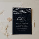 Esta invitación de desayuno de boda con luces de cuerda rústicas es perfecta para una celebración moderna. El diseño presenta hermosas luces de cuerda pintadas a mano en un fondo azul oscuro.