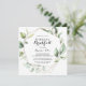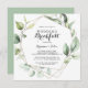 Este elegante y geométrico boda de color dorado invita al desayuno, ideal para un evento sencillo. El diseño se basa en hojas de eucalipto botánico pintadas a mano, adornando un marco geométrico dorado.
