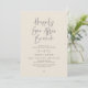 Marque el comienzo de su para siempre con elegancia utilizando nuestra tarjeta de invitación contemporánea de tema gris crema para la celebración del brunch después de la boda, "brunch de felicidad eterna", para tripulaciones, damas de honor y padrinos. Perfecta para parejas que extienden su alegre ocasión, esta invitación emana sofisticación con un toque de diversión, preparando el escenario para un evento memorable. Adornada con un tema de diseño de letra moderna y atemporal, añade un toque de encanto refinado a sus festividades. Creada por TeeshaDerrick, esta invitación promete capturar hermosamente su historia de amor.
