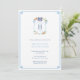 Este inteligente diseño azul y blanco presenta acentos cítricos que añaden al ambiente festivo. La cresta del monograma está rodeada por un borde de "Llave Griega" y en el reverso hay un refuerzo con patrón de "Llave Griega". He configurado la plantilla para un Brunch de recién casados, pero todos los campos de texto son personalizables según tus necesidades. Me parece que este diseño funciona muy bien para una celebración de aniversario de boda durante las fiestas. En el reverso, puedes cambiar el color de contraste (mostrado aquí como azul claro) a cualquier color que desees entrando en la herramienta de diseño (debajo del área de personalización de texto, haz clic en "personalizar más") y luego cambiando el color de fondo en el reverso.