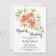 Hermosas flores de acuarela rosadas y rojas y elegantes verdes resaltan estas invitaciones de desayuno y burbujas para una despedida de soltera. ITEMS COINCIDENTES en nuestra tienda.