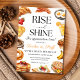 Celebre a sus increíbles maestros y personal escolar con esta hermosa invitación de desayuno 'Levántense y Brillen'! Con características de desayuno pintadas a mano como panqueques, café, croissants y frutas frescas, esta plantilla editable es perfecta para eventos de la Semana de Agradecimiento a los Maestros, almuerzos escolares o mañanas de reconocimiento al personal.