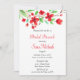 Esta invitación de desayuno nupcial presenta una obra de arte de flores de cerezo rojas en acuarela con hojas verdes. Utilice esta invitación de plantilla para su desayuno nupcial, almuerzo u otra ocasión. Personalice la plantilla con su información.