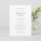 Elegante y romántico diseño de invitación para el brunch de las damas de honor en azul polvoriento y blanco que presenta un diseño clásico formal tradicional atemporal. El acabado sin bordes te permite elegir fácilmente la forma de papel favorita para el look final. Un fondo transparente permite que la belleza de tu elección de papel sea apreciada en la parte frontal y posterior de la tarjeta. Dos florituras decorativas, cada una conteniendo un corazón, rodean hermosamente la escritura. Personaliza con tus detalles en letra y escritura delicadas. Para obtener resultados óptimos, reemplaza los detalles del modelo con tus propios detalles, dejando espacio entre párrafos como en el ejemplo, y escribe con mayúscula donde se especifique o si la palabra es un sustantivo propio y normalmente se escribe con mayúscula. Envía un correo electrónico a invitationsuites@gmail.com con preguntas o solicitudes de colores personalizados.