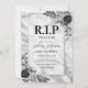 Divertidas invitaciones de cumpleaños 30 con una lápida gris plateada, flores acuarelas de estilo funerario rústico y una elegante plantilla de texto de celebración de cumpleaños que es fácil de personalizar.