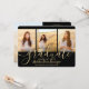 Comparte la alegría de una graduación de escuela secundaria o universidad e invita a familiares y amigos a celebrar con estas invitaciones personalizadas de 4 fotos collage en negro y dorado. Todas las imágenes y textos son fáciles de personalizar. (CONSEJO PARA COLOCAR IMÁGENES: Una forma fácil de centrar una foto exactamente como la deseas es recortarla antes de subirla al sitio web de Zazzle.) Esta plantilla está diseñada para una fiesta de graduación, pero se puede personalizar fácilmente como una invitación para una casa abierta o tarjeta de anuncio. Simplemente cambia el texto para incluir cualquier detalle que desees, como nombres de los padres, honores especiales, título de grado, cita inspiradora favorita, planes futuros del graduado o nueva dirección. Si hay algún texto que no se desee, simplemente elimínalo. El diseño presenta un fondo negro, gorra de graduación de lámina dorada, caligrafía de estilo manuscrito, tipografía moderna minimalista y cuatro fotos de tu elección, como fotos de último año o imágenes de la ceremonia de graduación. Por favor, ten en cuenta que el dorado es un color impreso, no lámina metálica. Esta tarjeta de invitación de graduación elegante es una