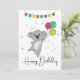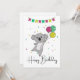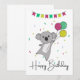 Saludo de cumpleaños Feliz cumpleaños con globos y koala para el cumpleaños de los niños. Una tarjeta divertida y colorida para el cumpleaños de un niño. Para amigos que aman a los koalas.