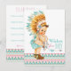 Deseos para tarjeta de baby shower tribal de bebé con adorable niña vistiendo ropa y mocasines de indio americano nativo en un fondo pastel azteca. Estas tarjetas de deseos tribales pastel para bebé se personalizan fácilmente para su evento simplemente agregando sus detalles en el estilo de fuente y color y redacción de su elección. Simplemente entréguelas a sus invitados para que las rellenen y las guarden como recuerdo para el bebé. También puede agregar un color de fondo.
