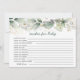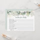 Juego Baby Shower "Wishes for Baby" - este diseño presenta ilustracion acuarela de color verde y dorado. En la parte superior de la tarjeta - efecto dorado confetti