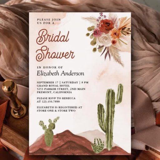 Invitación Desierto floral de terracota Cactus Ducha nupcial