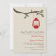 Una invitación del boda del aire libre con un desierto/un tema que acampa que ofrecen un ilustracion de una lámpara de aceite roja que cuelga de una rama de árbol con las hojas verdes. Personalice el texto con su información. La fraseología es de los padres de la novia.