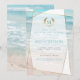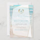 Invitación de Despedida de Soltera | Boda de Playa Geométrica con Monograma Moderno | Una versión moderna de invitaciones de boda de playa - Boda Única diseñada para la NoviaDescalza™ por ©WhimsicalArtwork™ que presenta una forma geométrica estilo terrario descentrado con transparencias variables en las facetas para permitir que el fondo de la playa del océano tropical se muestre en una variedad de formas e intensidades. Un enfoque divertido de la tipografía en el texto - con las iniciales del nombre de la novia y el novio rodeadas de una corona de laurel en la parte superior - en dos colores (turquesa y dorado) - seguido de fuentes serif coordinadas en verde grisáceo suave (tomado del océano) turquesa (tomado de las olas del océano en el fondo) y letras doradas. Los detalles de la boda limpios y simples solo en el frente de la invitación - un diseño de playa tropical coordinado en la parte posterior. Todo el texto, incluyendo estilos de fuente y colores,