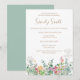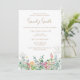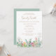 Personalice esta plantilla de invitación con la información de su despedida de soltera. Esta invitación Boho presenta un bonito diseño de hojas verdes y flores silvestres amarillas y rosadas.