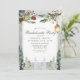 Invitación a la despedida de soltera con árboles de pino rústicos de invierno. Hermosas invitaciones elegantes para la despedida de soltera de boda de invierno con farol nevado y ramas de pino botánicas rústicas y árboles de pino. Este diseño de boda moderno personalizado se puede personalizar fácilmente con los detalles de su boda.