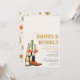 ¡Vamos, chicas! ¡Prepárense para una noche salvaje en el Salvaje Oeste! Esta divertida invitación de Botas y Burbujas es perfecta para una despedida de soltera o una fiesta de regalos con tema western. Única y original, con cactus pintados a mano con acuarela, botas de vaquero y sombreros fáciles de personalizar. ¡Pónganse su sombrero de vaquero y prepárense para el último rodeo!
