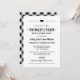 Enciende el asador y levanta un vaso con esta atrevida invitación de despedida de soltera "Cerdo asado y brindis" en clásico negro y blanco. La tipografía de estilo vintage, la encantadora silueta de un cerdo y un floreo decorativo dan un toque rústico pero elegante, con un patrón de gingham negro en la parte posterior de la tarjeta. Todo el texto es totalmente personalizable con los nombres de la pareja, fecha, lugar y detalles del anfitrión.