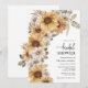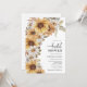 Invitación para Desayuno de Novia con Girasoles. Agrega un toque de sol a tu desayuno de novia con estos hermosos girasoles amarillos pintados a mano con acuarela, margaritas blancas y hojas de color verde salvia y terracota. Perfectas para una romántica fiesta rústica de otoño o una fiesta de jardín de verano al aire libre, estas impresionantes invitaciones de desayuno de novia boho chic establecerán el tono para tu día especial. Encuentra productos coordinados en las Invitaciones de Boda con Girasoles de Acuarela Rústica.